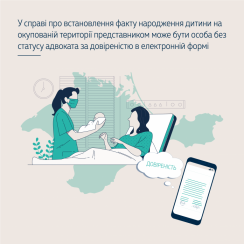 У справі про встановлення факту народження дитини на окупованій території представником може бути особа без статусу адвоката за довіреністю в електронній формі