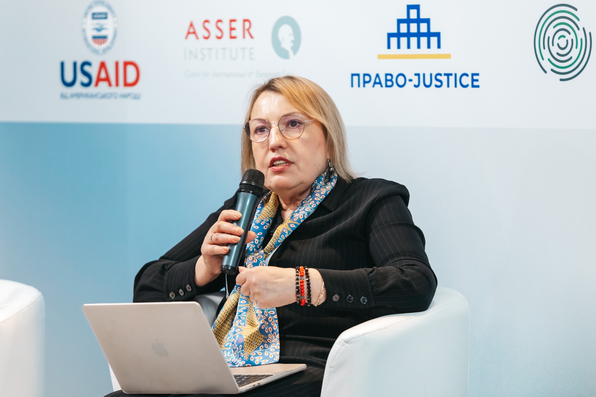 В межах виступу доповідачка навела приклад розгляду справ, пов’язаних із примусовим переміщенням, викраденням, депортацією осіб і сексуальними злочинами міжнародними судами й трибуналами. Окремо обговорили тему прийнятності доказів, а саме використання судом доказів із відкритих та електронних джерел, перевірки їхньої автентичності чи надійності. Суддя також розповіла про практику ЄСПЛ щодо оцінки походження та процедури збору доказів із відкритих джерел як гарантії їх автентичності.