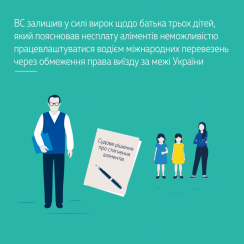 З таким висновком погодився Верховний Суд, залишивши без змін судові рішення міськрайонного та апеляційного судів. Відповідно до вироку чоловік був засуджений до покарання у виді обмеження волі на 1 рік за те, що протягом року злісно ухилявся від сплати встановлених за рішеннями судів аліментів на утримання трьох дочок. Це призвело до виникнення заборгованості за вказаний період у розмірі майже 175 тис. грн.