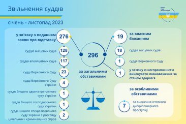 Протягом січня – листопада 2023 року Вища рада правосуддя ухвалила рішення щодо звільнення 303 суддів.