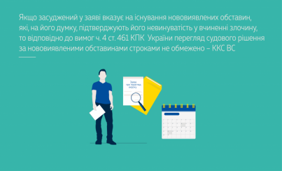 ККС ВС зазначив, що відповідно до ч. 4 ст. 461 КПК України за наявності обставин, які підтверджують невинуватість засудженого або вчинення ним менш тяжкого кримінального правопорушення, перегляд судового рішення за нововиявленими обставинами строками не обмежено.