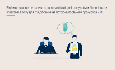 Про це зазначив Касаційний кримінальний суд у складі Верховного Суду за результатами розгляду касаційної скарги захисника, який стверджував, що відбитки пальців є біологічними зразками, а тому для їх відібрання необхідна була постанова прокурора, якої матеріали кримінального провадження не містять.