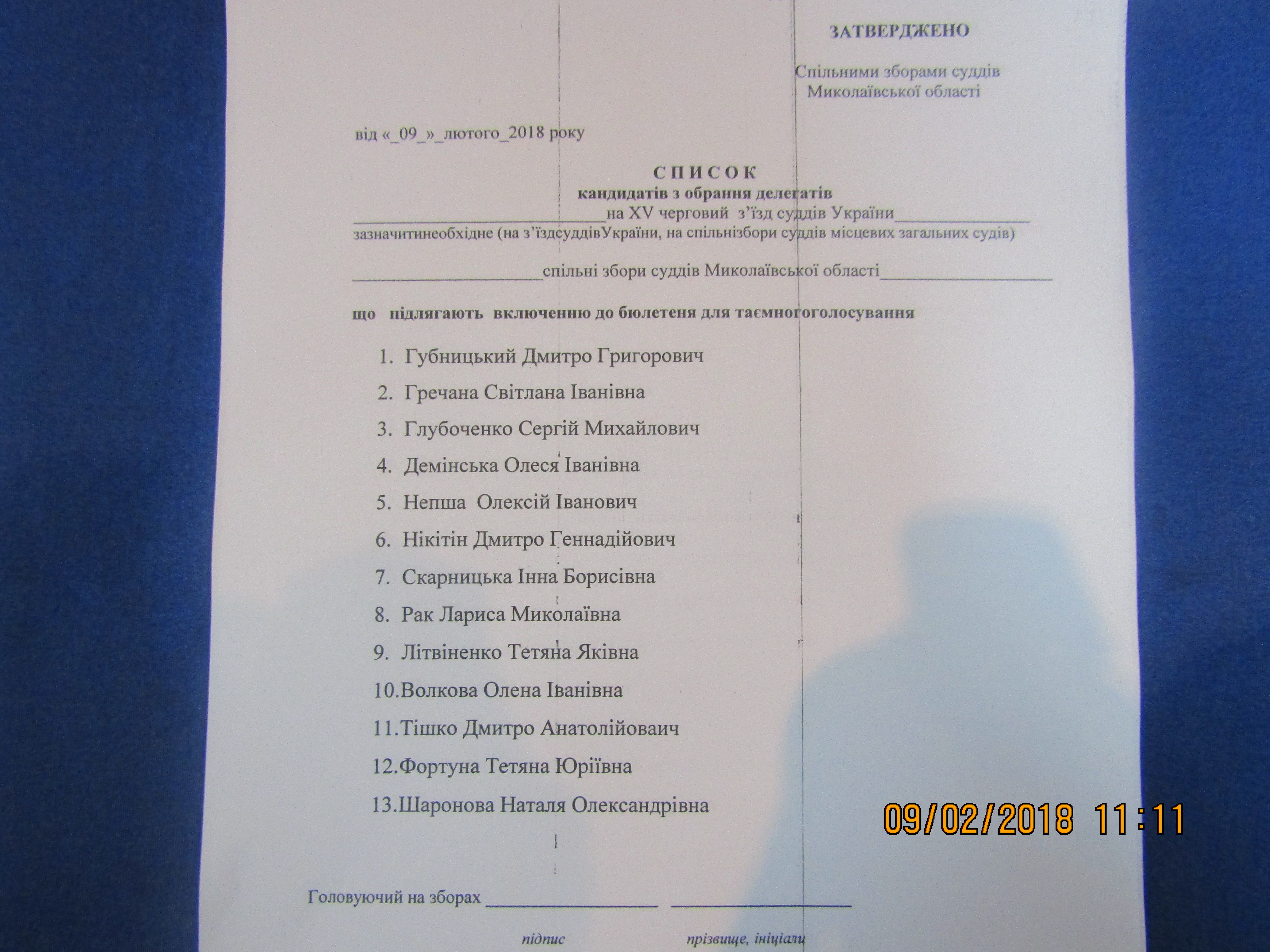 09 лютого 2017 року о 10.00 годині, на виконання рішення Ради суддів України № 71 від 7 грудня 2017 року щодо скликання XV чергового з’їзду суддів України, у апеляційному суді Миколаївської області відбулися спільні збори суддів Миколаївської області, на яких таємним голосуванням обрали шістьох делегатів на ХV черговий з’їзд суддів України, що відбудеться 5-7 березня 2018 року у м. Києві.
