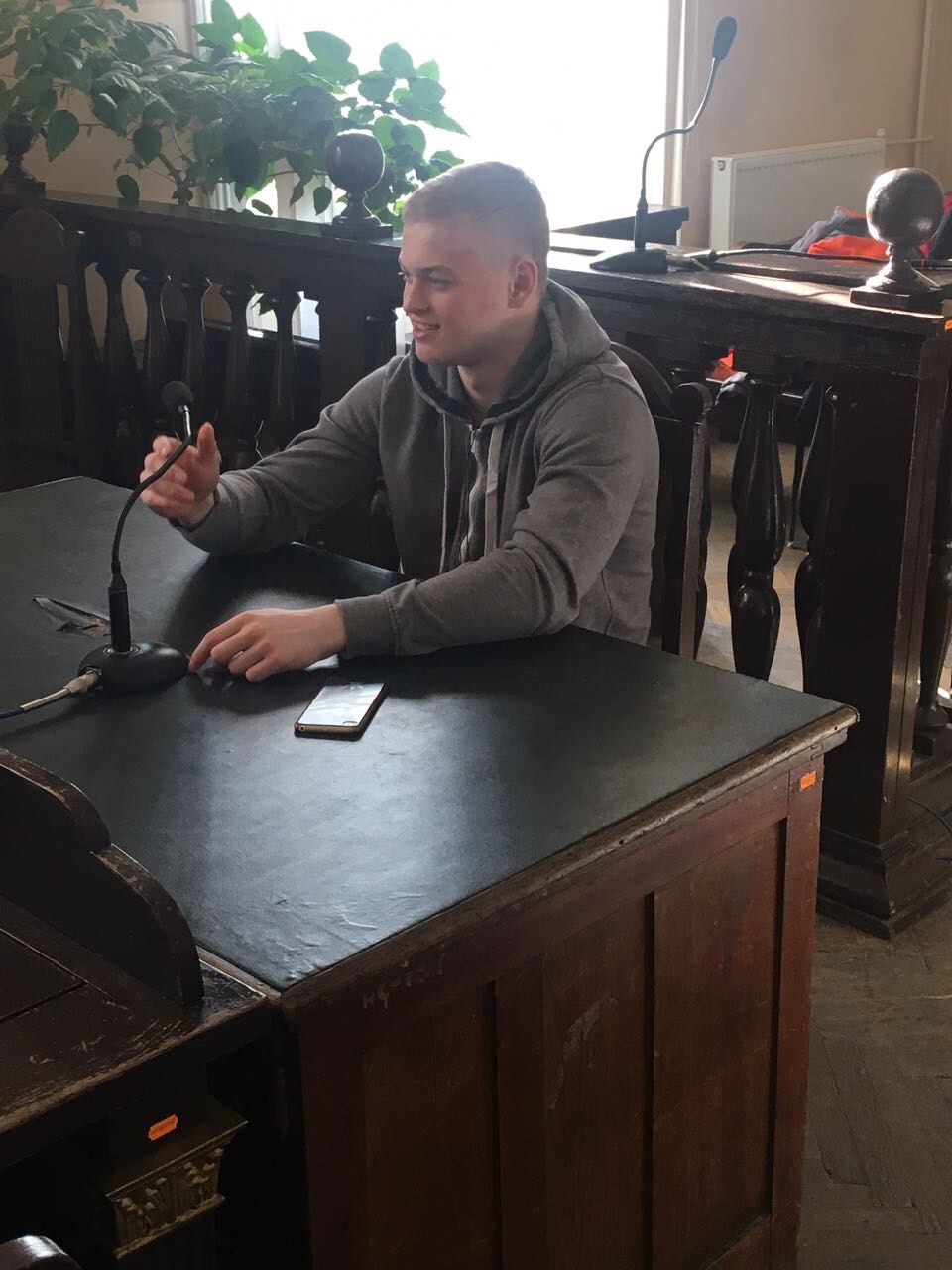 Помічник голови суду Мороз В.В. провів з учнями бесіду щодо правил поводження в суді, коротко ознайомив з історією судочинства та основними принципами роботи судів загальної юрисдикції загалом.