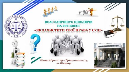 Вінницький окружний адміністративний суд розширює комунікаційні горизонти та запрошує школярів на унікальний простір спілкування у форматі правового квесту «Як захистити свої права у суді».