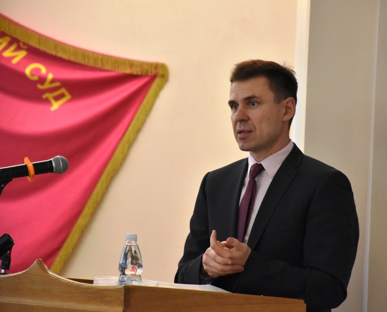 Із змістовною доповіддю на тему: «Процесуальні аспекти захисту прав інтелектуальної власності в мережі Інтернет» виступив суддя господарського суду Харківської області Бринцев Олексій Васильович. Доповідач розповів про сучасний стан Електронного суду та чинники, що перешкоджають повноцінному запровадженню Електронного суду (у тому числі не паралельне його запровадження з Єдиною судовою інформаційно – телекомунікаційною системою). Зазначив, що незважаючи на низку питань, еволюційний потенціал вичерпано і є необхідність провести електронну процесуальну революцію, що є єдиним шляхом у майбутнє. Також висвітлив мету Електронного суду, його переваги та складові. Визначив питання, що стоять перед функціонуванням ЄСІТС, та юридичні конфлікти, що виникають при існуванні на сьогодні електронно-паперового формату судочинства. Також Олексій Васильович визначив існуючі на практиці проблемні питання з використанням інформації в мережі Інтернет як інформації, що має доказове значення, та навів приклади з практики суду з висвітлених ним питань під час виступу.