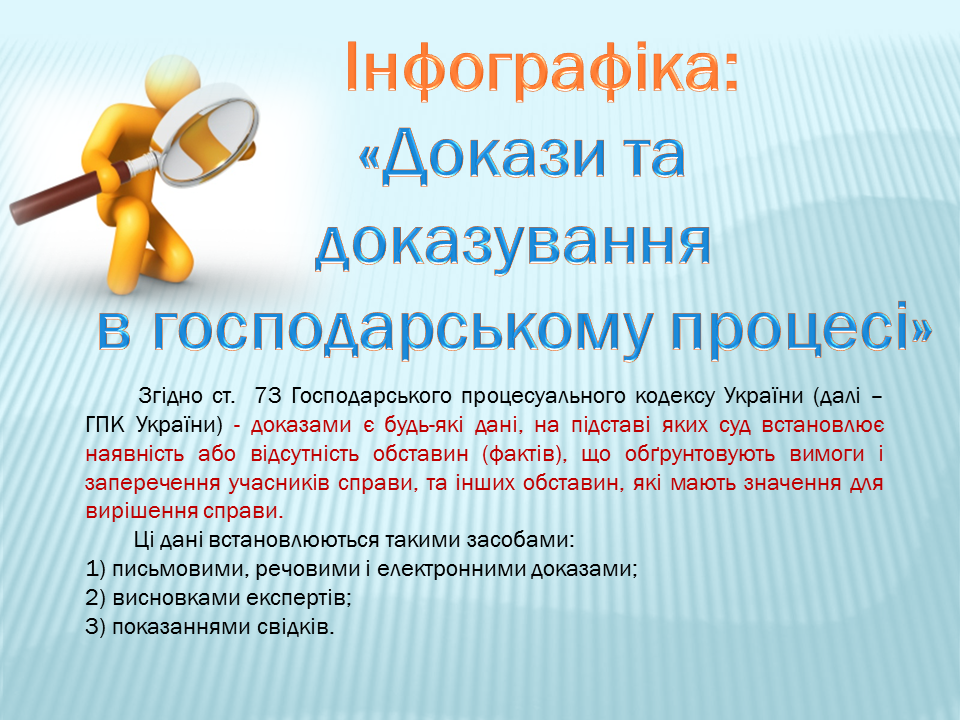 Докази та доказування в господарському процесі, - Господарський суд Житомирської області підготував інфографіку