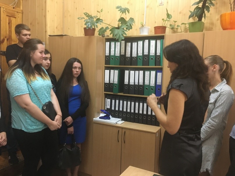 Насамкінець студенти відвідали відділ документального забезпечення (канцелярію) суду. Начальник ВДЗ (канцелярії) Вікторія Маринич ознайомила присутніх з основними завданнями та функціями відділу.
