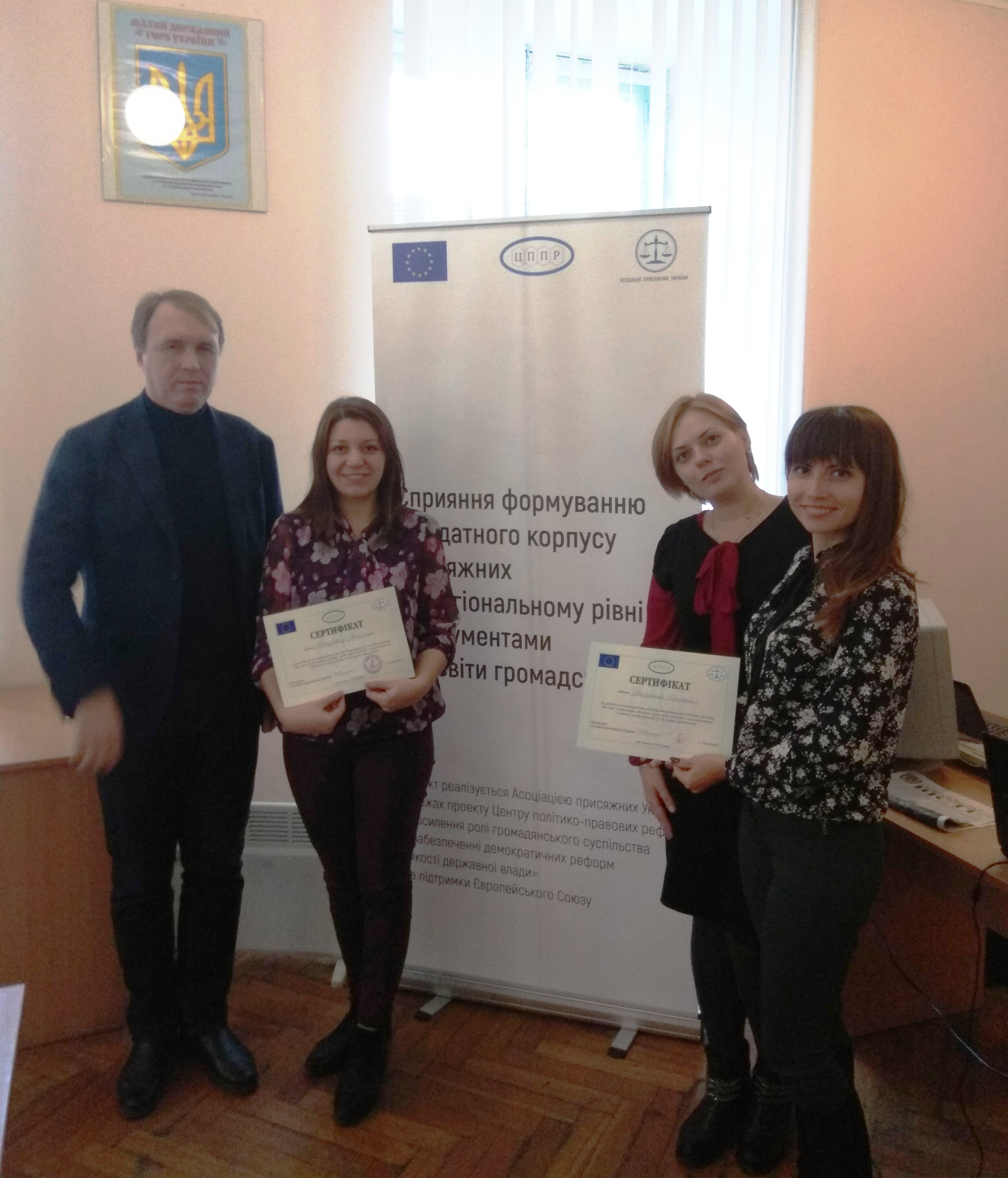 Наприкінці семінару присутні подякували за надану інформацію, а також отримали сертифікати з участь у тематичному короткотерміновому семінарі – тренінгу для прес-секретарів місцевих судів щодо роботи з громадськістю з питань популяризації інституту присяжних.